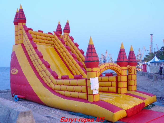 «Горка-Батут М 5» – это модель надувной горки с высотой стартовой площадки 5м. Такой оригинальный надувной «замок» возвышается над окрестностями и притягивает взгляды.
