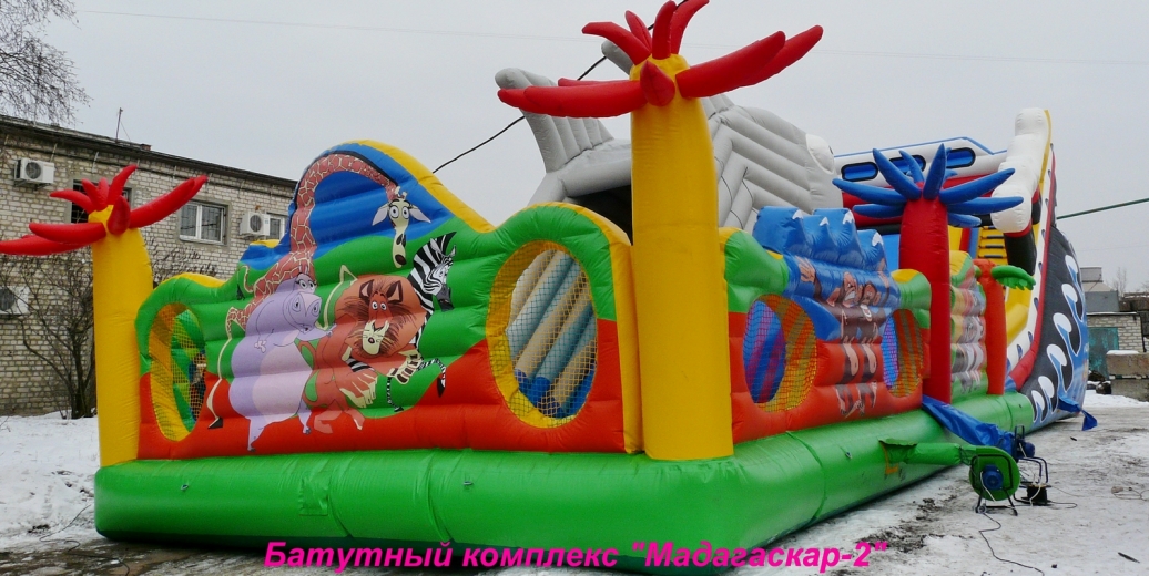 Надувной батутный комплекс «Мадагаскар 2» — как продолжение популярного мультфильма. Новые и старые герои, новый внешний вид и размер